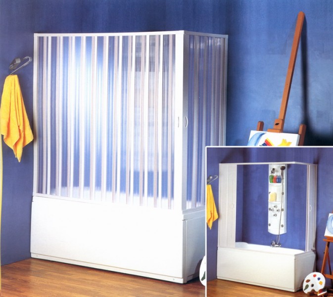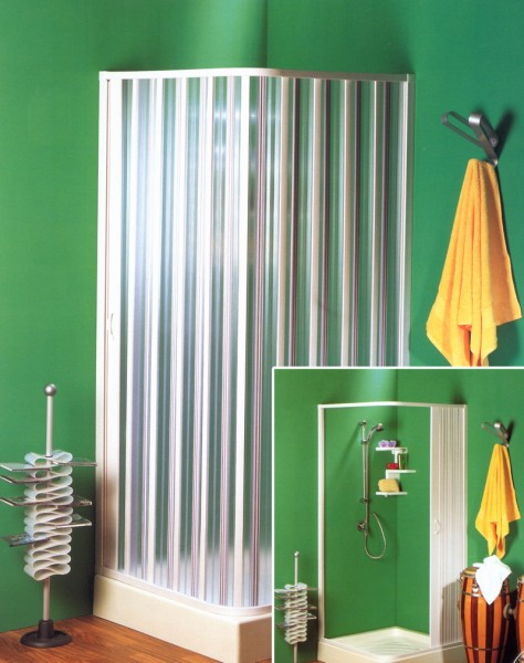 Γωνιακη καμπινα pvc Τεχνικα χαρακτηριστικα Κύριο πλεονέκτημά τους, είναι η ελευθερία κινήσεων που μας εξασφαλίζουν, αφού κατά το άνοιγμά τους μαζεύουν σε ελάχιστο χώρο. Κατάλληλες για όλα τα είδη μπανιέρας ή ντουζιέρας (τυποποιημένες ή χτιστές) κατασκευάζονται σε οποιαδήποτε διάσταση, σε ευθεία, γωνία ή και καμπύλη. Κατασκευασμένες από σκληρό P.V.C., είναι ασφαλείς και άθραυστες. Οι ημιδιαφανείς περσίδες, αφήνουν το φως να περνάει ελεύθερα στο χώρο, ενώ ταυτόχρονα, καλύπτουν με διακριτικότητα κάθε κίνηση. Δεν επηρεάζονται από την υγρασία.,δεν μουχλιάζουν και πλένονται εύκολα, με κοινά καθαριστικά, χωρίς να ξεθωριάζουν τα χρώματα.